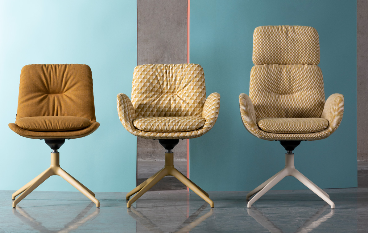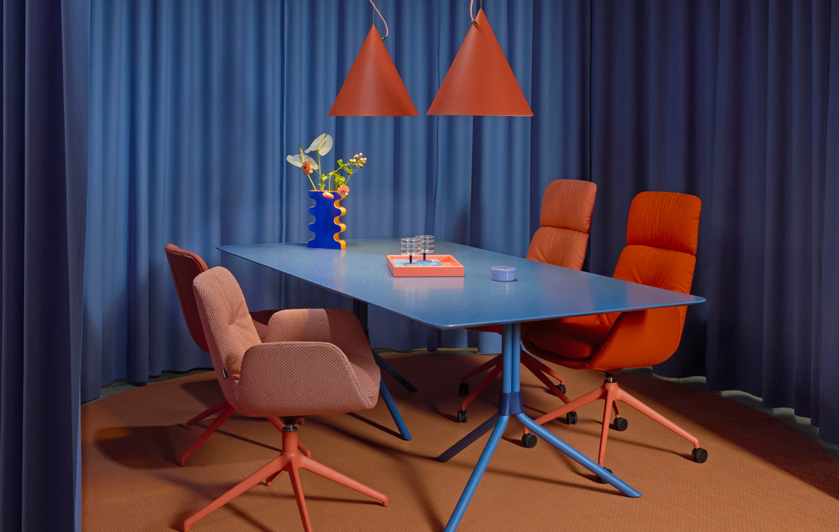 In 2022, the Milo series was launched, which with its appealing and flexible shape was well received by the market. Now Milo is being expanded through a new model - Opus. A stylish and comfortable chair available with a high or low back and the option to choose with or without armrests. The design is characterized by a flowing and clear line, defined soft contours, a seat shell with an iconic shape and a well-coordinated back curve that gives the furniture a clear and modern character. Through Opus, Johanson’s range is further broadened. A model that is slightly more compact than Milo and with a narrower backrest, Opus is a perfect model around the meeting table. Choose between four different bases and enable flexible furnishing. The upholstery gives a soft feeling with the clear indentations that become a nice detail. Johanson’s flexible production opens a wide range of textile options. Create personal environments with a model that is both comfortable and appealing. Thanks to the flexibility of the manufacturing process and the expertise of the Johanson team, Opus can be covered in most types of textiles and rich possibility to color the metal base with all RAL colours to meet the wishes of architects and interior designers. This helps ensure that Opus is at home in both conventionally furnished public spaces and in environments where the mood is more relaxed.