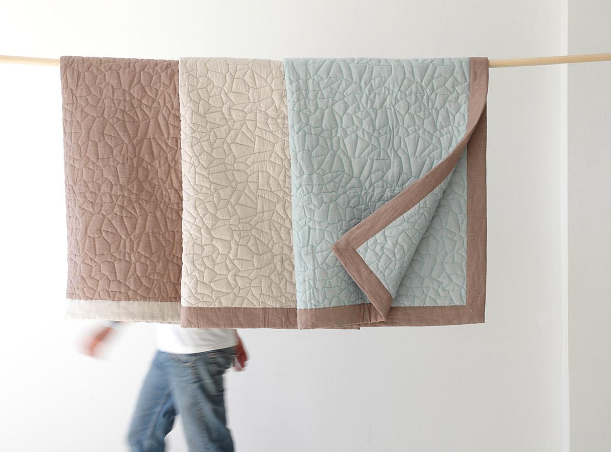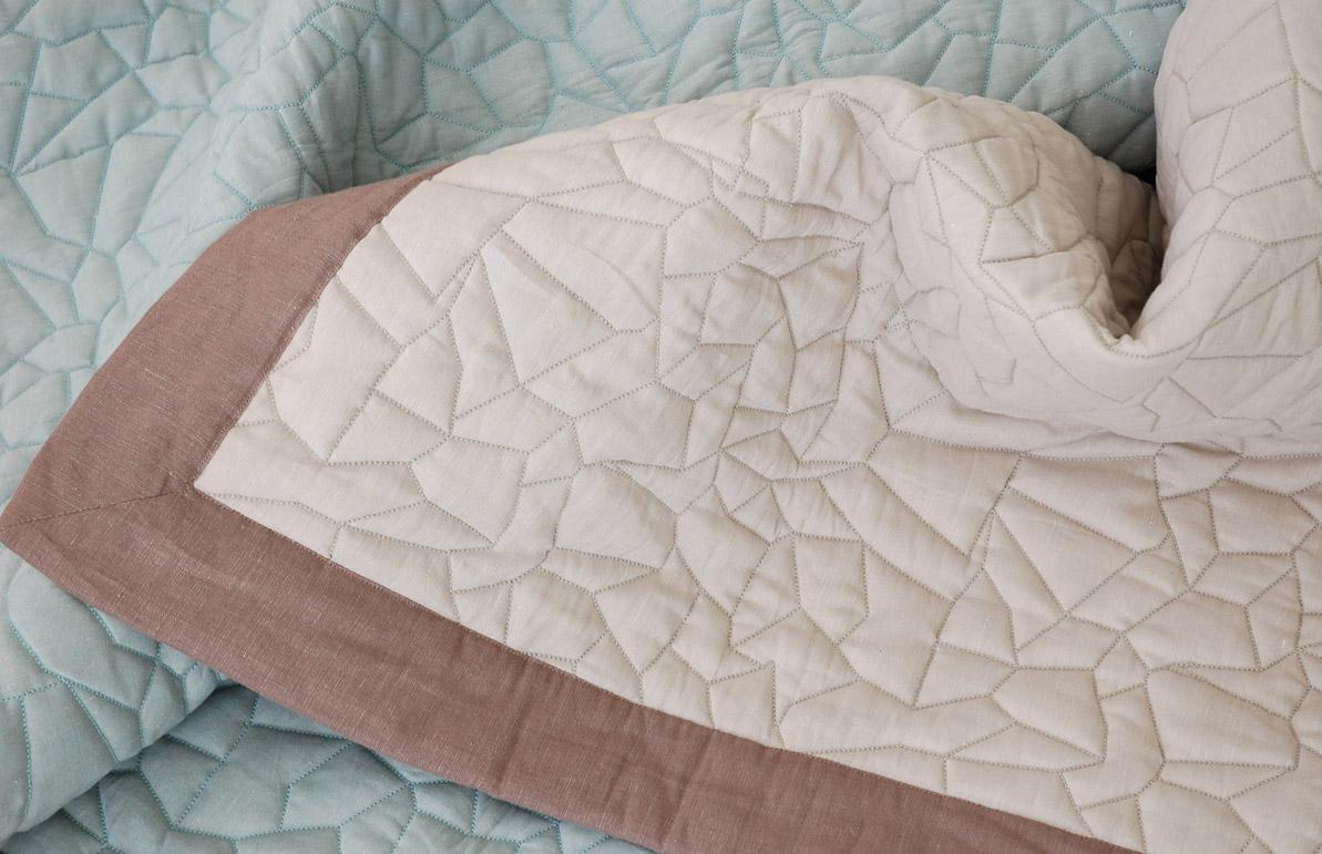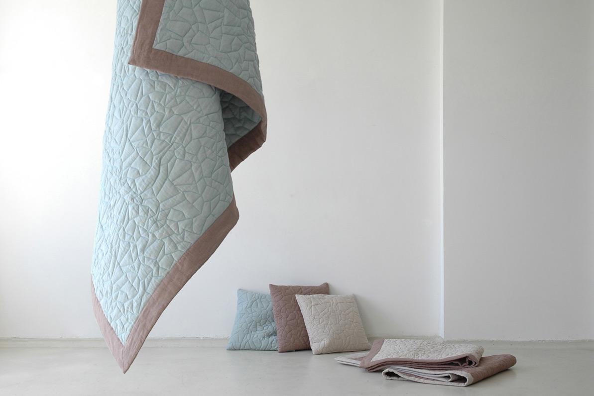Cushions and plaids from half-linen in different colour variations and sizes.