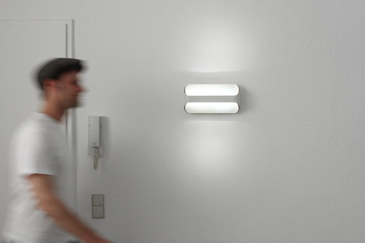 We experimented with creating an elongated shell of two bent sheet metal layers for a thin LED strip – and so Clark was born. Light is reflected by a smooth white surface and shines on the wall to fade softly toward the ceiling and floor. Its pleasant light dispersion and elegance, without blinding its environment, makes it suitable for both public and private spaces. Clark is available in standard colours: black, white and yellow. Width 350 mm, height 160 mm, depth 100 mm. LED info: 7,5W. Luminaire Luminous Flux: 520LM. CCT 3000K. SDCM 3. CRI 80