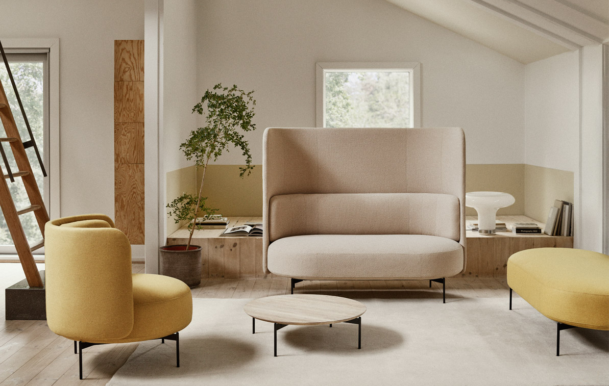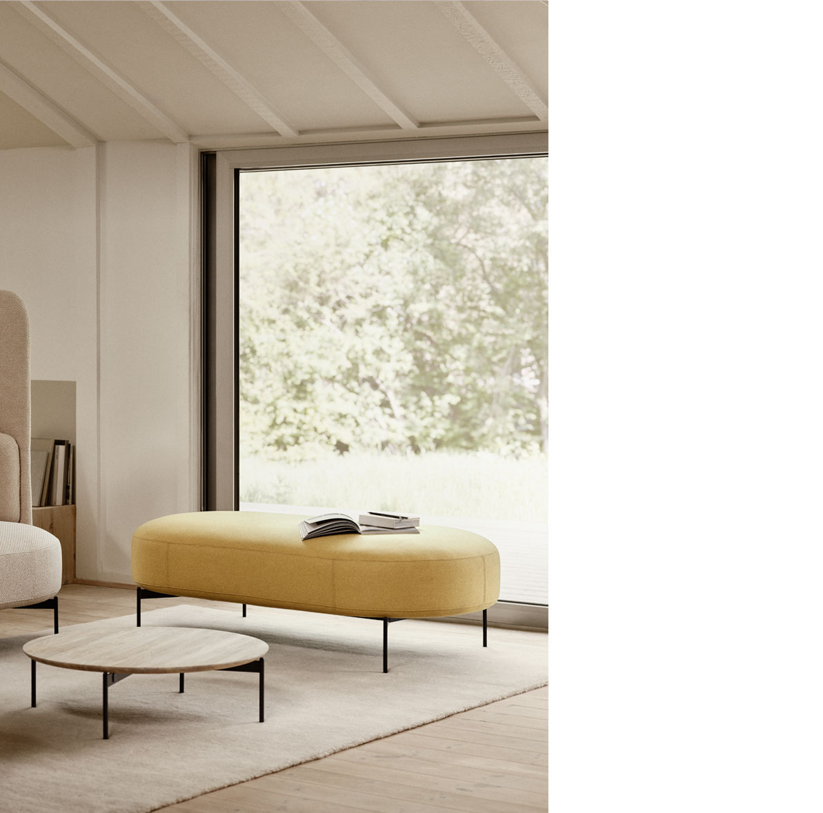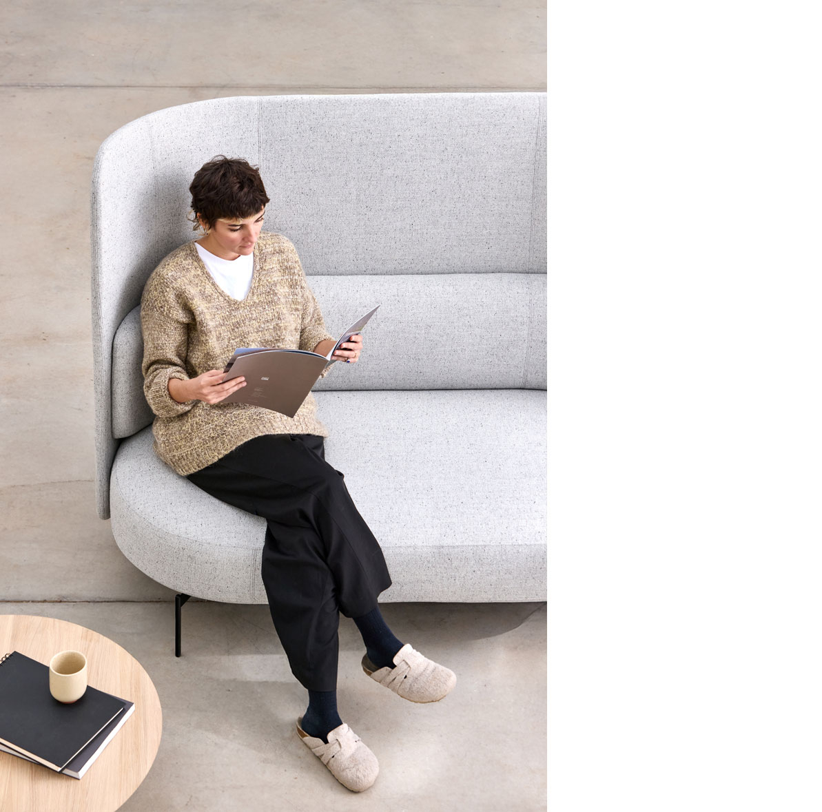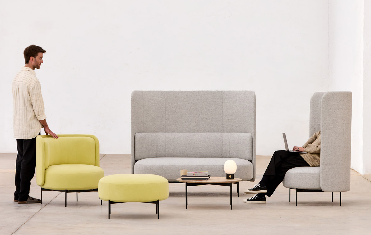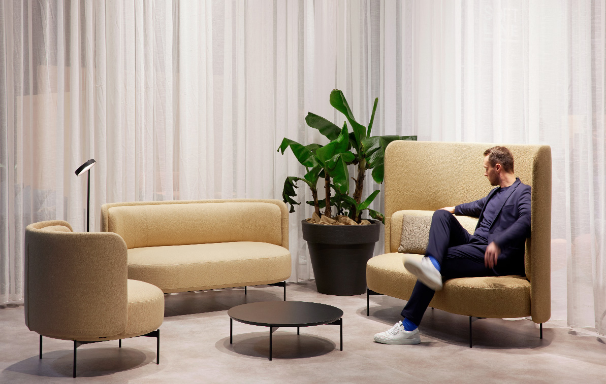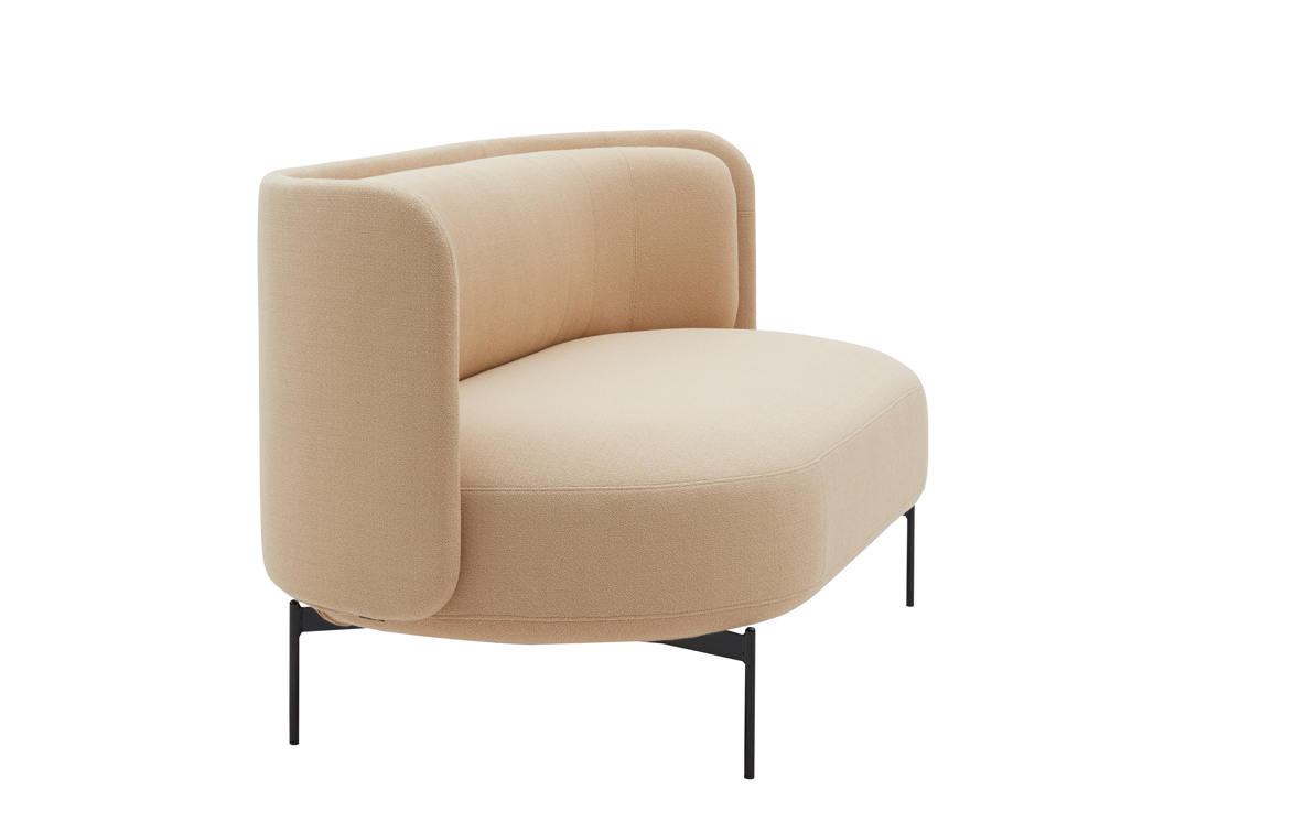 Joe is a series of soft, flexible seating furniture based on strong shapes, geometric curves, and clear lines. The centrepiece of the series is a circular pouf with slim legs. All seating elements are embraced by a light back wall that serves as a protective shell and creates comfort and privacy for relaxation or private conversations in hotel lobbies, lounge areas, libraries, or modern offices spaces. The soft backrest cushion provides maximum comfort. The family of seating poufs, sofas and armchairs are completed by a matching coffee table with the same floating appearance.