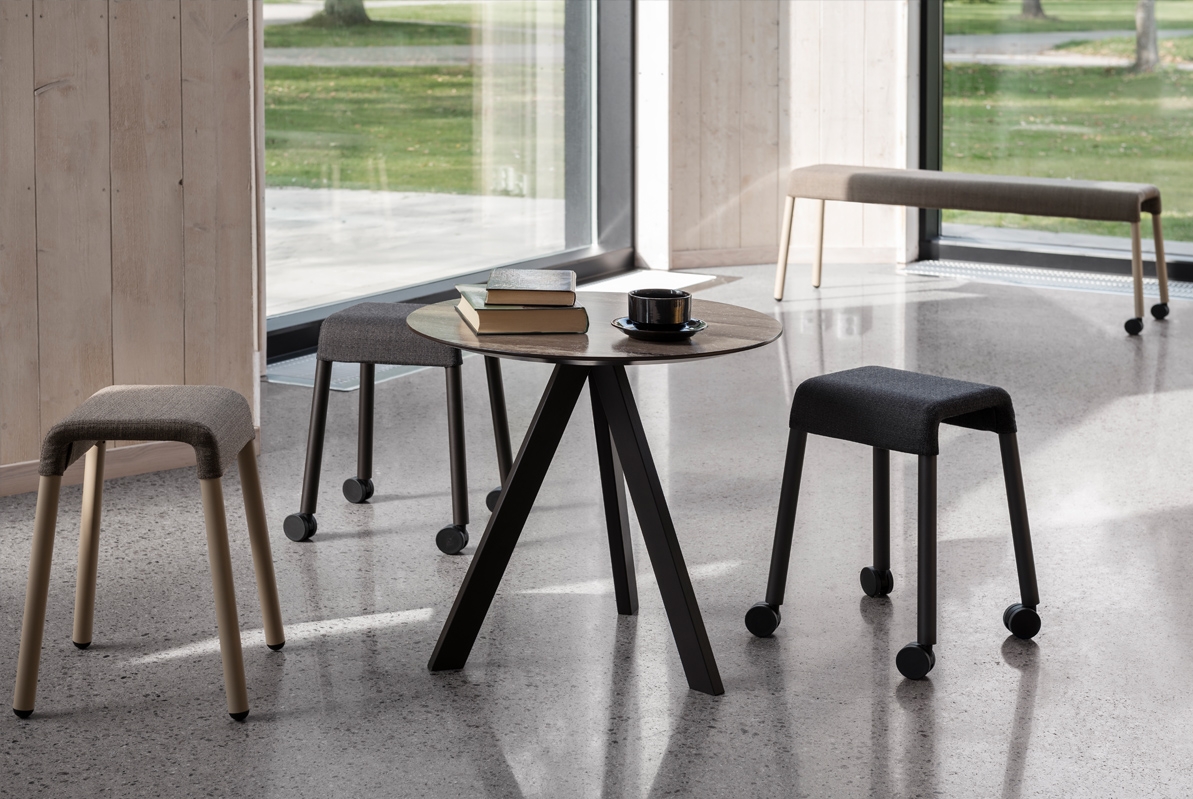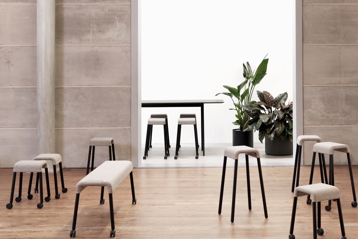 Stroll’s playful expression means that it is equally at home grouped together with its siblings as it is when used as a solitaire. The idea behind the series is a desire to encourage spontaneous meetings, support creative initiatives and create an item of furniture that is relevant and appropriate in a wide range of different settings from a traditional bar to the office, the workshop floor, reception or airport terminal. Stoll supports in every situation and facilitates all activities from working to resting.